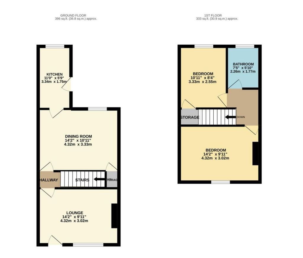 | First Floor | Front Bedroom 1, Rear Bedroom 2, Bathroom |