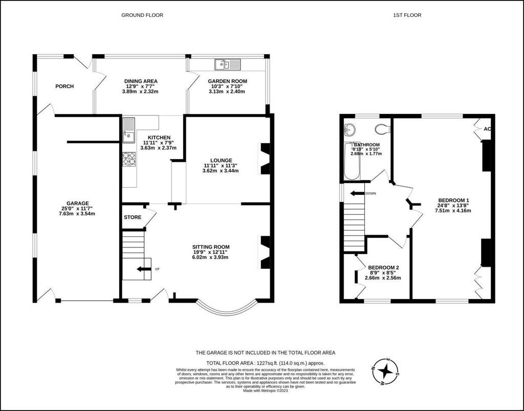 | First Floor | Landing 3 bedrooms (2 currently merged) & Bathroom/WC |