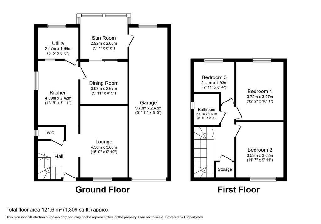 | Total Floor Area | Approx. 121.6 sq m (1,309 sq ft) |