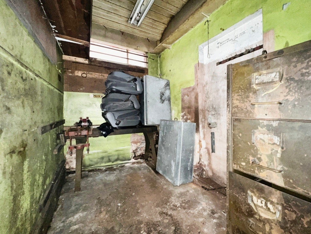 | Ground floor workshop: | 9' 1'' x 9' 10'' (2.766m x 2.997m) This is predominantly open plan with vehicle access folding timber doors to the front, single glazed windows to the front, and offers superb space for engineering works and probably have whole variety of industries. There is a section off separate WC room, wash hand basin, water meter. The maximum head height is around 3.931m and there is a first floor mezzanine storage area which is around 2.7 66X 2.997 this needs to be accessed via a ladder. |