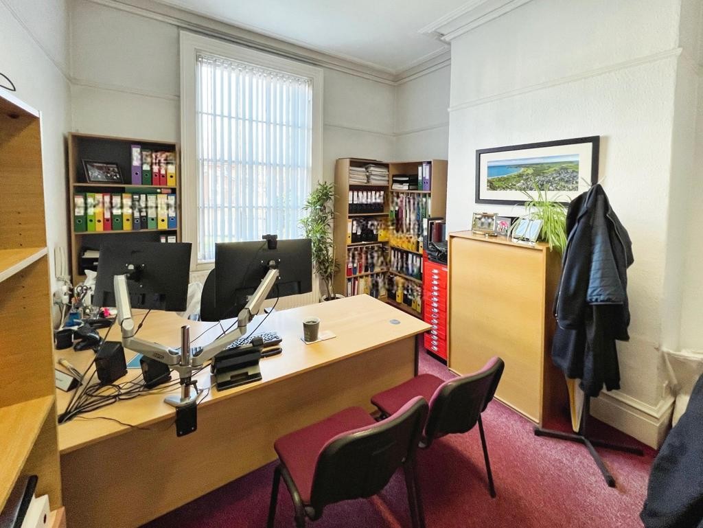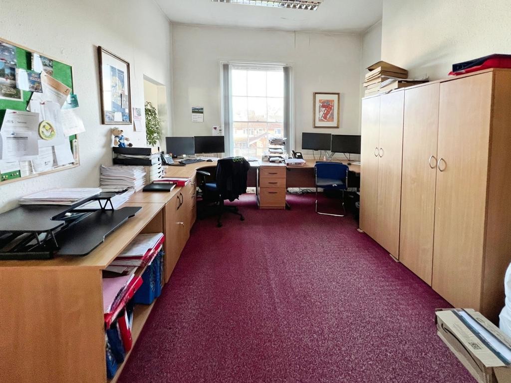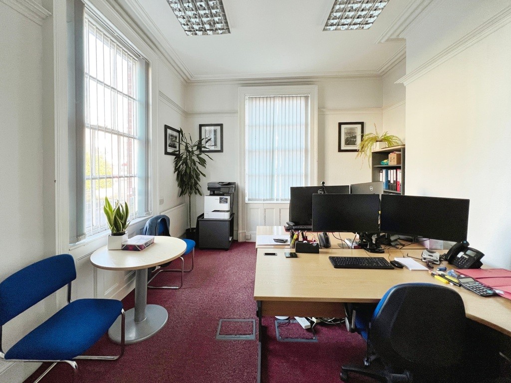 Attractive office premises within this period property, arranged over two storeys plus basement. The property extends to approximately 127 Sq M (1,371 Sq Ft)* of accommodation and is sold with vacant possession due to relocation of the occupier and seller. This Grade II-listed property is spacious and offers seven large office spaces, two washrooms, storage, and two private parking spaces, along with a large, rear lawn with wrought-iron railings.